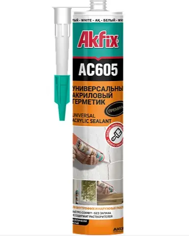 Akfix AC605 — однокомпонентный универсальный акриловый герметик для заполнения трещин и стыков в статичных соединениях. Подходит для внутренних и наружных работ.