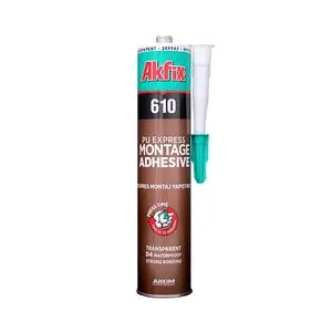 Akfix 610 — однокомпонентный конструкционный клей на полиуретановой основе для высокопрочного и быстрого склеивания различных материалов. Обладает высокой начальной схватываемостью, хорошей прочностью на разрыв. Водостойкость клея позволяет использовать его при склеивании деревянных поверхностей, подверженных воздействию высокой влажности и водяных брызг.