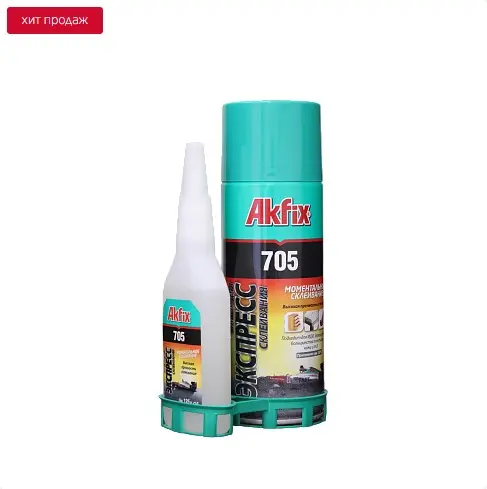 Akfix 705 — двухкомпонентный профессиональный клей, обладающий высокой прочностью и скоростью склеивания. Состоит из высоковязкого цианоакрилатного клея и аэрозольного активатора.