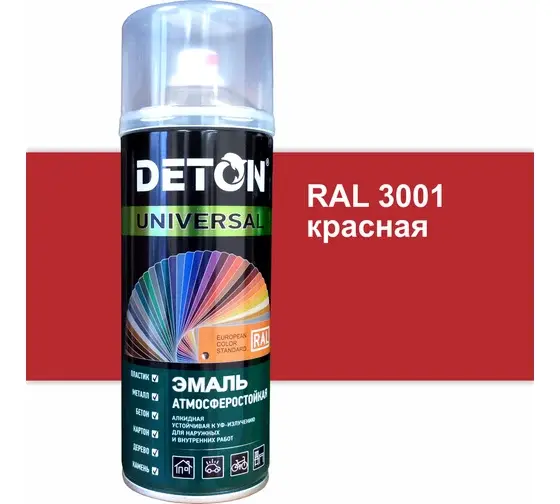 > Красная RAL 3001, Эмаль алкидная "DETON UNIVERSAL" атмосферостойкая, аэрозоль 520 мл