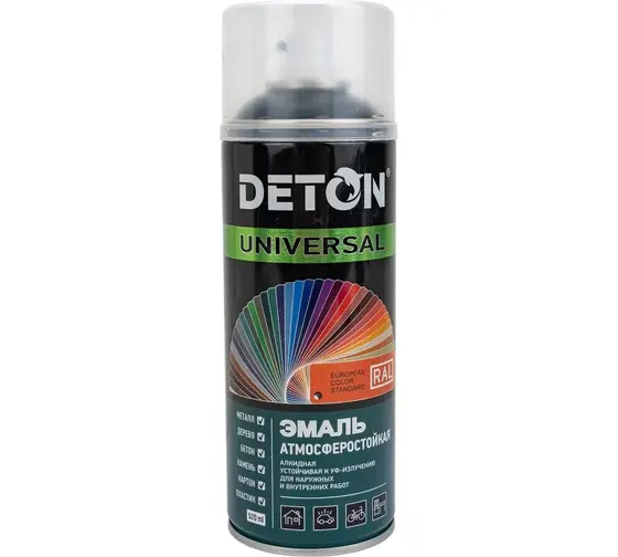 Черная глянцевая RAL 9017, Эмаль алкидная "DETON UNIVERSAL" атмосферостойкая, аэрозоль 520 мл — отзывы