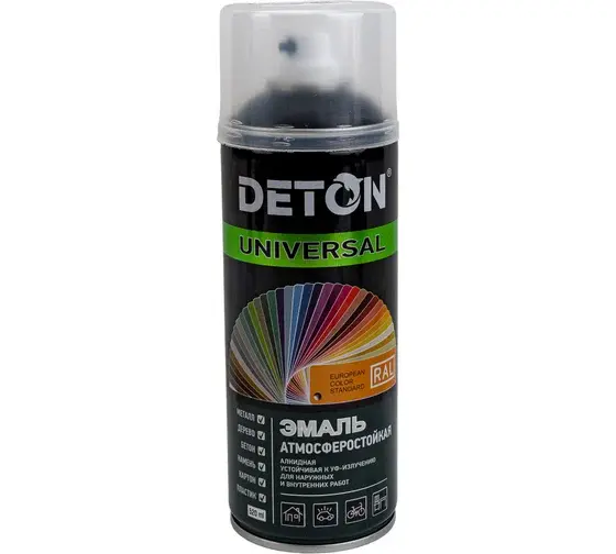 > Черная матовая RAL 9005, Эмаль алкидная "DETON UNIVERSAL" атмосферостойкая, аэрозоль 520 мл
