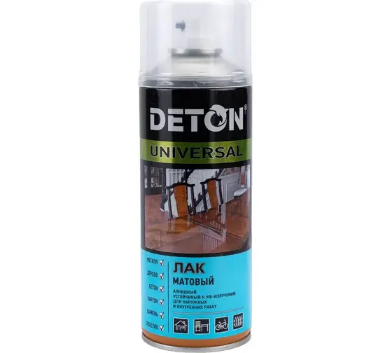 Лак матовый, алкидный "DETON UNIVERSAL" атмосферостойкий, аэрозоль 520 мл — отзывы