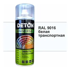 Белый транспортный RAL 9016, Эмаль акриловая "DETON UNIVERSAL" быстросохнущая, аэрозоль 520 мл