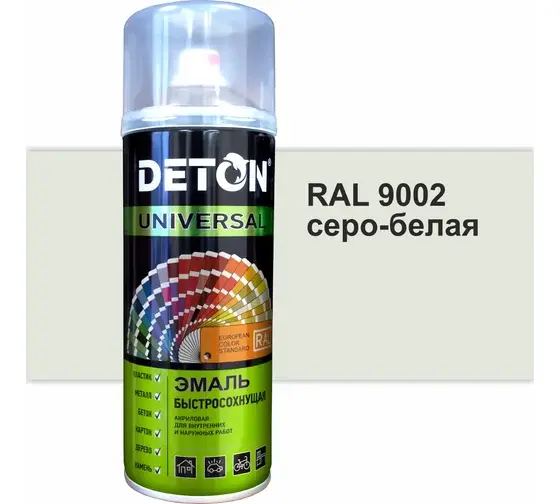 Серо-белый RAL 9002, Эмаль акриловая "DETON UNIVERSAL" быстросохнущая, аэрозоль 520 мл — отзывы