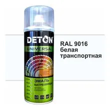 Белый транспортный RAL 9016, Эмаль акриловая "DETON UNIVERSAL" быстросохнущая, аэрозоль 520 мл