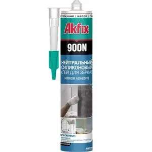 Akfix 900N — однокомпонентный нейтральный силиконовый клей-герметик, затвердевающий под воздействием влажности воздуха. Специально разработан для приклеивания зеркал к различным основаниям.
